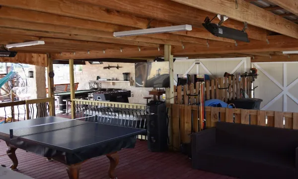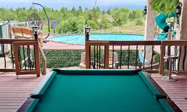 Complementing this cinematic experience the pool table, inviting friendly competition and camaraderie. Whether you're honing your skills or engaging in lighthearted matches, the pool table adds an element of interactive enjoyment to your outdoor oasis.