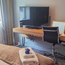 The hotel's location and cleanliness were excellent. The rooms were very large. The staff were helpful and friendly. We didn't have breakfast, so I can't comment on that, but a hotel this nice definitely has a good breakfast. If I were to go back, I would definitely stay at this hotel again. It's about a six-minute walk to the center. I look forward to returning. The only thing I didn't like was that we specifically requested a quiet location, away from the elevator. However, they had assigned it directly across from the staff room, and almost every 10 minutes, someone would come in and out, and the door would slam, which started early in the morning. That was the only downside. A hotel I can definitely recommend. Best regards.