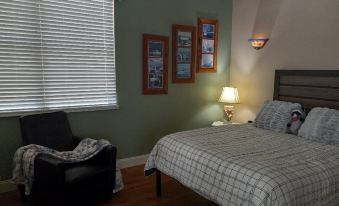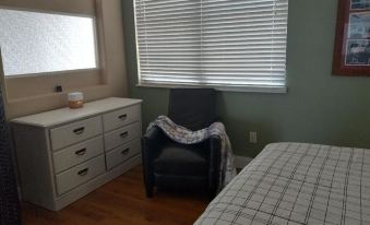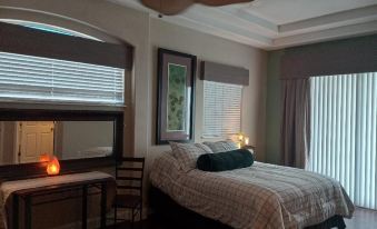 Private Oversized Master Bedroom with large Smart TV, Master Bath/Hot tub (with power jets) & Walk-in Shower, (with Shower Water Filter); small 2nd bedroom (partially enclosed, yet, totally private. The doorway can be open during the day and enclosed with decorative tall room divider at night); 1.5 Guest Bathroom in Hallway, easily accessible to guests and 2nd Bedroom.