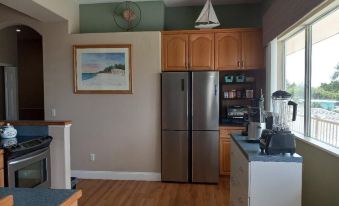Fully equipped kitchen with Stainless Steel modern appliances: fridge, dishwasher & stove/oven. Electric Tea kettle, Toaster/Convection Oven, Electric Coffee Maker, High-tech Blender, Power Juicer. It also features a state-of-the-art Alkaline Water Filtration System with Ionization for your safety.