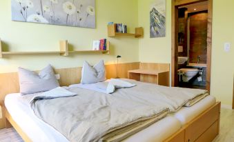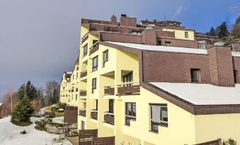 Beatenberg 14 km from Interlaken: Large comfortable residence with access to hotel facilities. Large, comfortable aparthotel. On the outskirts, in a quiet, sunny position on a slope, 14 km from the lake. For shared use: well-kept garden, lawn for sunbathing, indoor pool. Table tennis, children's playground. In the complex: restaurant, bar, breakfast room, lounge, sauna, massage (extra). Relaxation room, spa area, billiard table, playroom, lift, storage room for bicycles, sun terrace, storage room for skis, central heating system, washing machine, tumble dryer (for shared use, extra). Breakfast possible (extra). Communal covered parking. E-charging station. Grocery 2 km, supermarket 12 km, bakery 1.5 km, bus stop 10 m, railway station "Interlaken West" 12 km, outdoor swimming pool 14 km, lake Thunersee 14 km. Golf course (18 hole) 14 km, minigolf 50 m, walking paths from the house, gondola lift, skisport facilities 650 m, ski bus stop 10 m. Nearby attractions: Beatushöhlen, Interlaken, Jungfraujoch Top of Europe. Well-known ski regions can easily be reached: Niederhorn 650 m, Jungfrau Region 30 km. Well-known lakes can easily be reached: Thuner- und Brienzersee. Hiking paths: Niederhorn, Hohgant, Via Jacobi. Please note: suitable for families. "Enzian 720", 4-room maisonette 140 m2 on 2 levels, on the upper floor. Spacious and bright, very comfortable and tasteful furnishings: open large living/dining room with panoramic window with dining table and cable TV. Exit to the balcony. 1 room with 1 double bed (2 x 90 cm, length 200 cm). Kitchen (oven, dishwasher, 4 induction hot plates, toaster, kettle, microwave, freezer, electric coffee machine, Capsules for coffee machine (Nespresso) extra, raclette grill, fondue Set (cheese)). Sep. WC. Upper floor: 1 room with panoramic window with 1 double bed (2 x 90 cm, length 200 cm), bath/shower/WC. 1 room with 2 beds (90 cm, length 200 cm). Shower/WC. Large balcony, south facing position. Balcony furniture. Marvellous panoramic view of the lake and the mountains. Facilities: children's high chair, baby cot for up to 2 year olds. Internet (WiFi, free). Parking (1 car). Please note: suitable for families. Non-smokers only. Maximum 1 pet/ dog allowed. Smoke alarm.