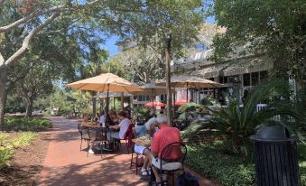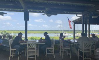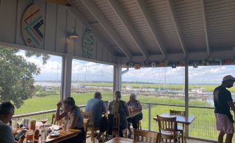 無需過橋,女士島就有很多選擇。我們的小屋距離越來越多的令人驚歎的餐飲場所有 5 分鐘步行路程,包括 Dockside 海鮮餐廳,該餐廳設有美妙的封閉式戶外酒吧和可欣賞 Factory Creek 一覽無餘美景的甲板。Q's Chicken BBQ Shack 提供更休閒的用餐體驗。Fillin' Station 是一家古怪的當地酒吧,設有俯瞰 Factory Creek 的戶外甲板,提供休閒菜單。