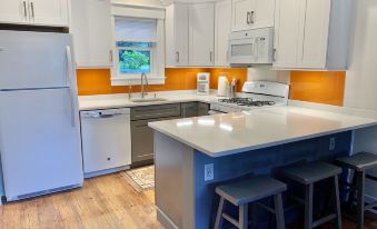 抵達後,您將擁有一個設施齊全的廚房,提供所有炊具和必需品(香料、油、咖啡、糖、烹飪用具等)、免費 wifi 上網、過濾自來水、帶製冰機的冰箱、燃氣灶、石英檯面。兩台帶 Roku 流媒體棒的電視、免費 YouTubeTV 帳號、各處 USB 接口以及可停放兩輛車的車道停車位。兩件浴袍、記憶海綿床墊、額外的半浴室以及提供洗衣液的洗衣房都是一大亮點。此外,還提供:額外的衛生紙、紙巾、垃圾袋和洗碗巾。基本上,只需攜帶牙刷和衣物即可。