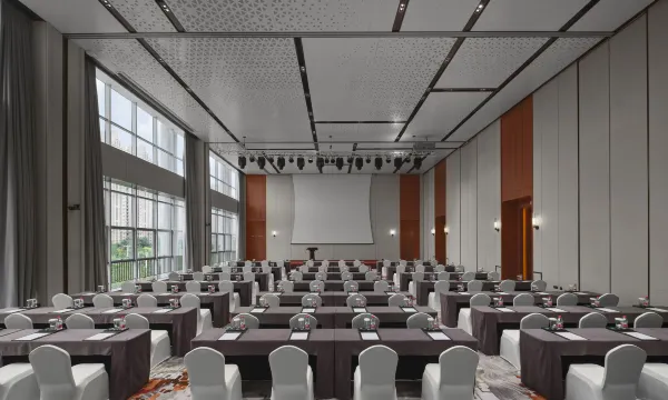 飯店配備約600平米的大宴會廳,無柱挑高7.5米,配備專業燈光視聽設備,可靈活分隔為4個獨立宴會廳,自由組合滿足不同規模宴會使用需求。除大宴會廳外,飯店還擁有8個面積在50至100平米不等中小型會議室,以及專業的會議管家團隊,為顧客提供一站式會議服務,滿足各類宴會不同形式、不同場景的個性化需求.500平方米的戶外草坪,提供專業的婚宴和會議服務,是婚禮草坪、戶外休閒拍照的不二之選