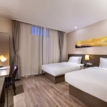 El hotel es correcto. Creo que teniendo en cuenta otros hoteles donde nos hemos alojado en China durante este mes puede que sea en relación calidad precio el más caro, pero está bien ubicado, sobre todo por el metro. La habitación es espaciosa y tiene ducha separada. La lavadora-secadora gratuita funciona bien. El desayuno es oriental pero con opciones occidentales y muy abundante. Pero el personal, y aquí quiero ser bastante clara, salvo las dos camareras de la cocina que servían el desayuno que eran de lo más amable, correcto,amigable y servicial que hemos conocido, y la camarera que limpiaba nuestra habitación que siempre nos saludaba con una sonrisa y muy atenta... el personal de recepción no sé si es que tenían todos problemas personales o realmente eran así de desagradables al trato. Entiendo que la barrera idiomática sea un handicap, pero es algo que asumimos todos y con los traductores y un poco que pongamos cada uno de nuestra parte se soluciona. Sólo habia caras largas, y salvo el primer dia que necesitamos ayuda para la plaza de Tiananmen por mal funcionamiento de wechat, creo que no hemos sido más molestos. Saludar costaba, despedirse costaba, y si te dirigias a ellos su cara era muy poco cercana. Siento mucho si en algún momento les hemos ofendido con algo y por eso su comportamiento, pero no fue nuestra intención y desde luego desconocemos el hecho en sí. Y especial mención a un chico que nos recibió cuando llegamos por la noche, llegamos lloviendo y de noche porque nuestro avión llego ya tarde. Creo que nos dirigio dos palabras.. nihao y passport...y ya está...nos indico el ascensor la planta...pero ni mas indicaciones de horarios desayuno, teléfonos de interés, servicios extra o no... Aunque fuera buenas noches en su idioma, hubiera sido de agradecer. Menos mal que esto sólo nos ha pasado en este hotel, porque en el resto de China que llevamos recorriendo este mes, el trato por toda la gente que nos hemos cruzado en hoteles, servicios públicos, restaurantes, tiendas, atracciones, la gente anónima de la calle etc...ha sido inmejorable.