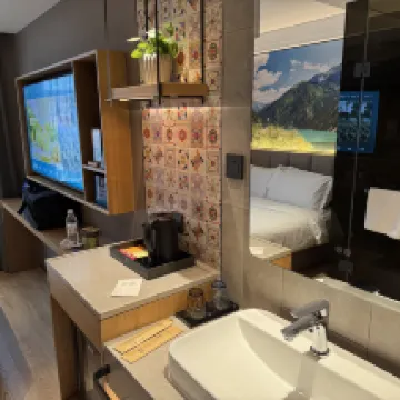 房間+延遲退房太貼心 這次入住超滿意!床品柔軟親膚,床墊軟硬適中,躺下秒放鬆,旅途疲憊一掃而空。房間乾淨整潔,衞浴乾濕分離,熱水充足,細節到位。最驚喜的是延遲退房服務,前台爽快同意延後兩小時且無額外收費,讓收拾行李超從容,不用趕時間。酒店位置便利,辦理入住退房高效,性價比拉滿,下次來還選這家!