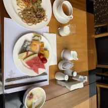 選擇入住長富宮飯店的理由很簡單,因為這是一家服務細節把控很到位的酒店。前台對入住時酒店外牆體清潔工程操作的温馨告知,室內温度調控的提示,房間勿打擾狀態下未打掃的明白卡,歸類分明介紹詳盡的入住手冊,讓賓客清清楚楚地掌握了所住之地的現狀。 酒店大堂的香氛應用比較用心,草本植物淡雅的清香,讓人有一種迴歸春天的暖暖感覺。花園每次去都能在不同角度找到屬於當下時節的風景。房間風格主打一個日式簡約,配備了空氣凈化器。自助早餐微微調整了一下佈局,青花魚煎烤的火候非常不錯,肉質緊緻、口感鮮美。很有特點的是沙拉區域各種的調料醬汁,白葡萄、石榴香醋汁為蔬菜沙拉增添了新口味。一層大堂吧的咖啡非常棒,深烘豆子的香醇,讓味蕾很滿足。
