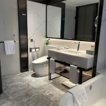 酒店設施齊全新升級的房間非常智能化落地窗看耳環的景色很漂亮房間幫我進行了升級服務員態度都非常好前台小唐辦入住流暢快速笑容很好