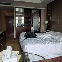 住過幾十家五星酒店從來就沒見過一家這麼明目張膽騙人的,床品質量還這麼差,因為是看到榻榻米大床房於是下單,比普通大床房貴幾百塊,結果告訴我電視下邊那一長條就是榻榻米,五星酒店,床品是破的,真喪良心