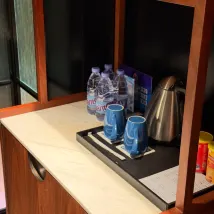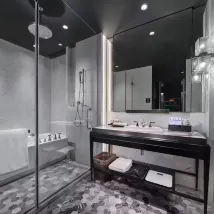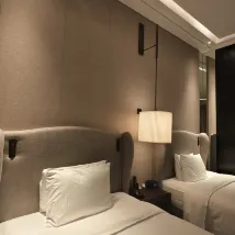 這個酒店摳的就好像沒見過錢一樣,沒見過星級酒店用這麼差的拖鞋、紙巾、衞生紙、等等,都不如縣城裡招待所用的好。沐浴露一股放了好幾年變質的味道。廁所進去地上有污漬,看起來沒打掃一樣。電視節目單寫着挺全,打開衹有5個台。小冰箱貴的沒有誠意,一瓶罐裝330ml的可樂賣32塊錢,好像怕人喝完還要開着豪車去超市進貨。點外賣衹讓送到大堂外面,2025年了連個送餐機器人都捨不得買。房間裏的提示牌也好,wifi也好都是英文朝外或者優先展示,尤其是床頭的禁煙提示牌,正面放置英文背面是中文並且涉及到罰款900。令人感到失望。