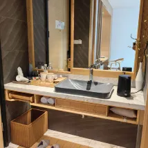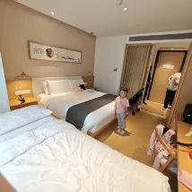 酒店位置就在地鐵口,銀泰和APM都在隔壁,門口有直達故宮出口和景山公園的公交,交通非常便利,全裝修竹製品風格,酒店早餐單買58/人,比較簡單中餐但也足夠,B1樓的洗衣房LG洗烘機半小時就能烘乾衣物也無異味,美中不足的是酒店裝修僅4年卻有些漏水,入住第二晚更是遇到燈孔滴水,不過酒店有及時處理溝通,尚可諒解,希望儘快維修以確保入住體驗感