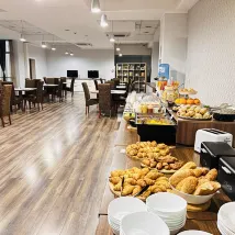 Отличный отель! Приветливый отзывчивый персонал. Вкусные разнообразные завтраки. Чистый номер, ежедневная уборка. У нас был двухместный номер с видом на улицу, с террасой. Удобное расположение отеля, автобусная/трамвайная остановка прямо у входа. Отель находится в здании небольшого торгового центра, занимает три этажа. В здании со двора имеется кафе, рядом пекарни и кофейни, обменные пункты, напротив Макдональдс.
