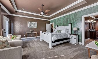 Office turned bedroom displays built-ins, double doors, along with formal grand piano music room, 2 additional upstairs bedrooms, and so much more. The traditional design features detailed woodwork and custom archways along with thoughtful, colorful touches, formal music room including string instruments making it a welcoming, cozy space to entertain. This home is a must-stay! Our home comfortably sleeps 12 people. There is additional charges for up to 14 maxAbout pets:No pets allowed.About checkOut:Check out before 11:00 AM.About children:Children allowed: ages 3-17.About customRules:There is no parking allowed on the street or in the cul-de-sac for any reason at any time.