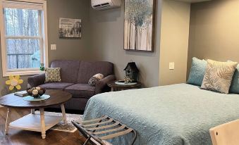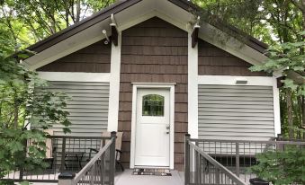 This tree house is located within a beautiful wooded site, sculpted around majestic hills with breathtaking views of Northern Michigan's natural beauty. All of the amenities and comforts of home are provided including a washer and dryer, a private balcony with a priceless view, and a cozy fireplace. This studio style cabin offers two queen size beds, love seat, reclining chair, and dining table/chairs. Air mattress, pack & play, and high chair available upon request.