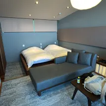 訂了兩間帶露枱房間貼心地幫我們安排在隔離,房間乾淨,很漂亮,有足夠空間感,入住時訂不到晚餐很可惜,只加了早餐,早餐很美味,房間的私人温泉浴池很棒,可以自己調節想要的温度,公共浴場也不錯,固定39到41度,温度剛剛好,很舒適 除了入旅館的路較難找外,旅館其他設備都很好,亦有小遊戲,例如咭牌,黑白棋等,房間電視亦有youtube,小朋友亦不會怕悶 推薦給自駕的人到此旅館,無論家庭還是情侶都合適喔!