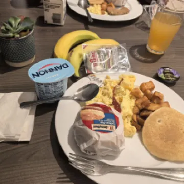 靠近UC伯克利,新酒店,設施不錯,衞生良好。訂的雙床套間,前台給了雙卧室套房,空間感非常滿意。客廳有冰箱、洗碗機、微波爐,電磁爐,可以自己燒飯(因為周圍有不少好吃的餐廳,我們沒時間開火)。酒店的美式早餐比較豐富,場地夠大,服務員也很熱情。交通非常便利,公交和地鐵就在咫尺之遙。總之,如果去UC Berkeley,很推薦這家酒店。