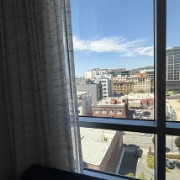 酒店位置極佳,交通出行便利,房間乾淨衞生,廚具設施新,從房間遠眺Berkeley downtown 街景,意外收穫夕陽落日餘暉