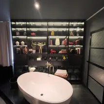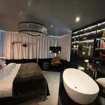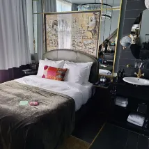 Das Sir Savigny Berlin bietet eine Sir Suite, die zwar geräumig für ein normales Zimmer ist, den Namen „Suite“ jedoch nicht ganz verdient. Auf den Buchungsbildern war stets ein Balkon zu sehen – in meinem Zimmer leider Fehlanzeige. Der Blick auf den S-Bahnhof ist interessant, nachts jedoch etwas laut. Die freistehende Badewanne ist optisch ein Highlight, braucht allerdings sehr lange, um sich zu füllen. Zudem verfügen alle Wasserhähne über separate Kalt- und Warmregler, die teils sogar falsch gekennzeichnet sind. Das Bad ist schön gestaltet, aber recht klein, Pflege- und Hygieneartikel werden bereitgestellt. Das Design des Hotels ist stark maximalistisch und hebt sich vom Standard deutlich ab. Das Personal spricht nur teilweise Deutsch, ist jedoch sehr freundlich. Der Eingangsbereich ist etwas gewöhnungsbedürftig: keine klassische Rezeption, sondern ein Esstisch mit Laptop, und eine Eingangstür, die gelegentlich nicht reagiert. Das Bett war extrem gemütlich, die Minibar reichlich gefüllt und zu überraschend fairen Preisen. Alles in allem ein stilvolles Boutique-Hotel für Gäste, die ein unkonventionelles Hotelerlebnis schätzen, aber kleine funktionale Abstriche in Kauf nehmen können.