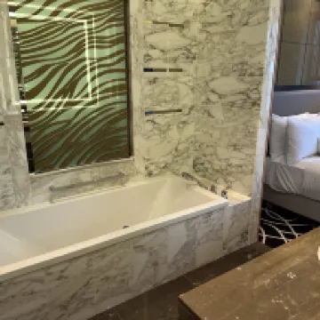 Fantastic hotel and great rooms. Best breakfast and beautiful spa gym swimming area. A bit pricey specially at exhibition times.