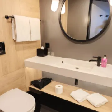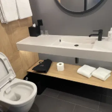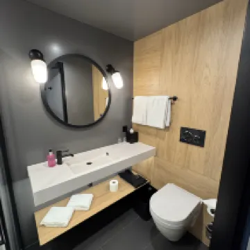 房間挺大,衞生情況挺好。和歐洲絕大部分酒店一樣:沒有牙刷/牙膏、沒有燒水壺、沒有拖鞋、有沐浴露/洗頭膏! 前台服務人員都是年輕人,非常熱情、態度好!入住的時候會給一個激活碼,下載BernWelcome App後,用這個碼激活公共交通免費乘坐,好像是27個小時多有效! 酒店在Bern Wankdorf站邊上,從Bern下車的,要轉S1/S2/S3/S4M乘坐一站下車。很方便的! 酒店偏年輕風格,不太適合我這個年紀的。但是,酒店本身和酒店前台的幾個年輕人,都很好!推薦入住!