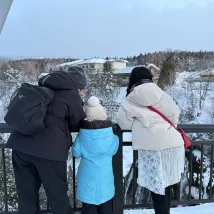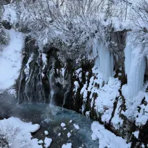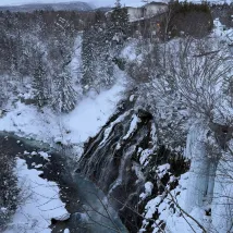 這個酒店是朋友介紹的,開始看評價衹有4.0分還有點擔心,但到了超乎預期。首先酒店位置很好,就在白鬚瀑布後面,所有白鬚瀑布的照片都是以它為背景的(圖一紅框處),走路兩分鐘就能到那個網紅橋。酒店雖然有點老但還算乾淨衞生,前台和餐廳服務員都很好,酒店包晚餐和早餐,都是自助餐品種和味道還不錯。房間訂的是日式房,是榻榻米形式,我們去吃晚餐回來服務員就把床鋪給鋪好了,不錯的一種體驗,我三個人睡非常寬敞。酒店一樓自帶温泉,住客都是免費泡,而且温泉通宵開放,有兩個室內池和一個室外池,都不大,室外温泉可以望得到那個網紅橋,估計天氣好橋上的人用高倍望遠鏡都能看到你在裸奔。這次主要是帶小孩玩雪,到哪兩天山上的雪非常大,出酒店門就可以玩雪了,非常適合親子休閑遊。還有酒店晚上會安排免費車帶住客去清池參觀,雖然那清池沒啥看的但也算打卡了。酒店也有免費接送車從旭川和美瑛站接送,要提前一天預約,我是讓攜程酒店管家預約的,去酒店旭川站下午一點和五點兩班,離開酒店衹有一班9點40。