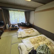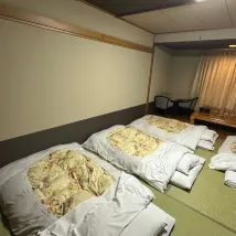 除了爛,我沒啥話好說,如果你想訂房,請三思!一進大廳Check in就有一種被歧視的感覺,接待人員是一位老頭,不知道哪裡得罪他,給人態度很差,很像日本古早時期很嚴肅的老人一板一眼,飯店換過名字,感覺在洗白,結果裡面很多地方的名稱一樣沿用舊名(例如問卷),入住的房型非常老舊,沒有空調,我以為穿越時空來到大正(非常復古的給了一把鑰匙),不知道是不是老日本特有文化,到達房間,房門卻是敞開的,一進門一股直上腦門的鹹魚乾腳臭味撲鼻而來,浴室的浴簾有流浪狗身上的臭味,床非常小且老舊,感覺的出來彈簧已經跟櫃檯人員一樣鬆弛了,躺下去支撐力不足到完全不平整,睡起來非常痛苦,浴室裏居然沒有沐浴用品(它不是友善提供的那種,是非常傳統三瓶超大瓶的沐浴用品),還要自己去櫃檯問,才拿給你,CP值超低(一晚要價¥三萬多塊,退房還要再補¥300円湯費,很奇怪,為何不一起算進去,而且我們完全沒使用),花錢受罪,一顆星都不值得給。建議訂房網別再提供這種歧視非在地遊客的飯店,誰住誰倒楣。
