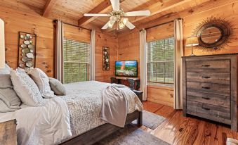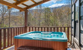 On your way to your new home away from home, stop in nearby Townsend. The town has all the shopping and dining you need, along with the soothing trickle of the Little River. After a brief drive, you'll arrive at the cabin, surrounded by an acre of green grass, swaying trees, and rolling hills that's all yours to enjoy. Watch the kids run around from the comfort of the covered porch, or soak your worries away in the private hot tub before heading inside.