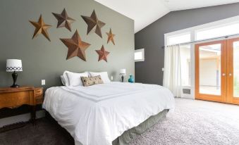 - Large Master Suite features a king-size bed, a relaxing reading area, a walk-in closet, and a large master bathroom with a walk-in shower for two. Includes a 55" flat panel TV also with YouTube TV w/DVR, Apple TV, Netflix, etc.