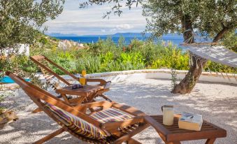 The villa has a beautiful private terrace with outdoor furniture. You can enjoy your stay with a beautiful view of the sea.