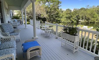 Renovated and updated historic home on 2 acres, the Main House has 5 bedrooms on the second floor, 3 1/2 baths and is located and on the historic Mill Pond in Pocasset. The home features 2 kitchens, 2 living rooms, library, dining room that can seat 12-14, 5 bedrooms and a bunk room for 4. This site was the location of the Pocasset Iron works back in 1825. Walk to Pocasset Village where you will find a Post Office, Country Market, restaurants, a convenience store, hardware store, gas station and Barlows Landing beach which is just a mile away.