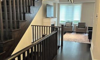 This stylish place to stay is perfect for group trips. This home is located in an upscale neighborhood at Mississauga Road and Queen Street. Nestled in a street with forest on both sides of street. Very short distance to Lyons Head Golf Course.
