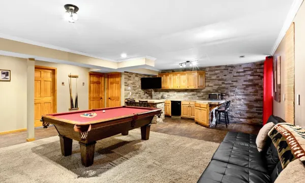 - (Entertainment Room) Has Bar Area with small refrigerator and full size pool table. Additional three sleeper couches