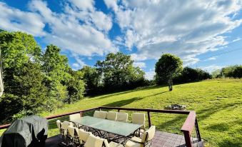 - (Backyard) Has Hot Tub, Large Deck with seating area, fire pitAbout pets:Pets allowed: dogs less than 50 lbs per pet (limit 2 pets total).About checkOut:Check out before 10:00 AM.About children:Children allowed: ages 0-17.About checkIn:Check in after 4:00 PM.About smoking:Smoking is not permitted.About minBookingAge:Minimum age to rent: 23.About events:No events allowed.