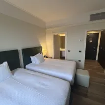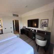 La struttura è bella, pulita, dall'aria internazionale. La camera superior è grande,molto pulita, i letti molto comodi, TV enorme, armadio capiente con anche asse e ferro da stiro, cassaforte spaziosa. Mi è piaciuta l'illuminazione con anche luce da lettura. C'è il bollitore con scelta per caffè e tè.Il bagno ha una doccia molto grande con soffione a pioggia che apprezzo. Non c'erano accappatoi e ciabattine ma le salviette erano molto morbide. Phon grande e professionale sempre ottimo per le donne con capelli lunghi.Camera bene insonorizzata e moquette nei corridoi che non fa sentire i rumori di passi..L'.aria condizionata in camera programmabile in autonomia funziona benissimo.