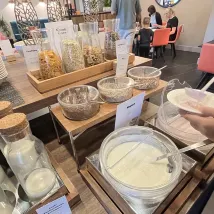 No tea, coffee filled in had to ask about 3 times first came with tea then with milk then with spoons. Horrible.