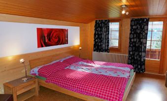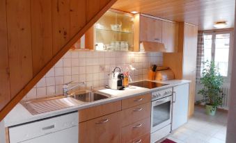 Brienzwiler 5 km from Brienz: Small, rustic chalet "Hüsli", 2 storeys, built in 1850. In the centre, in a quiet, sunny position, in a cul-de-sac. In the house: storage room for bicycles, storage room for skis, central heating system, washing machine (extra), drying room. Parking at the house. Grocery 30 m, supermarket 7 km, restaurant 1.3 km, bus stop 250 m, railway station "Brienz" 7 km, outdoor swimming pool 6 km, indoor swimming pool 10 km. Tennis 7 km, indoor tennis centre 10 km, riding stable 1.1 km, walking paths from the house 10 m, skisport facilities 10 km, ice rink 6 km. Nearby attractions: Freilichtmuseum Ballenberg 500 m, Brienz, Aareschlucht. Well-known ski regions can easily be reached: Meiringen - Hasliberg 10 km, Axalp 15 km. Well-known lakes can easily be reached: Brienzersee. Hiking paths: Rosenlaui, Hasliberg. The owner does not accept any groups. 2-room chalet 50 m2 on 2 levels, south facing position. Very cosy and wooden furniture furnishings: open living/sleeping room 17 m2, ceiling height 190 cm with 1 double sofabed (140 cm), dining nook, cable TV, international TV channels, radio, CD-player and DVD. Open kitchen 8 m2 (oven, dishwasher, 4 ceramic glass hob hotplates, toaster, kettle, electric coffee machine, Capsules for coffee machine (Nespresso) extra, raclette grill, fondue Set (cheese)). Bath/shower/WC. Upper floor: (steep stair), 1 room 12 m2, ceiling height 190 cm with 1 french bed (160 cm, length 200 cm). Exit to the balcony. Small balcony 5 m2, south facing position, small terrace. Terrace furniture, barbecue (portable), deck chairs (2), box-room. Marvellous view of the mountains and the resort. Facilities: children's high chair, baby cot for up to 2 year olds, hair dryer. Internet (WiFi, free). Parking at the house. Please note: non-smokers only. Beautiful old tiled stove in the lounge.