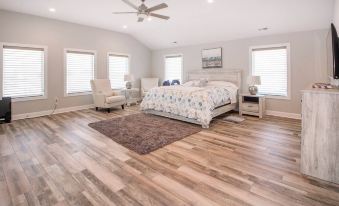 The 2nd floor has 2 Master Suites. Both rooms have access to the 2nd floor deck. One suite has 2 couches and a sitting area. The other suite has a private family room outside of the bedroom and private access to exit the home.