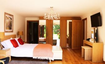3 double bedrooms with TV's in each room. Main bedroom with bi-folding doors leading to extensive patio, allowing views of the delightful garden.