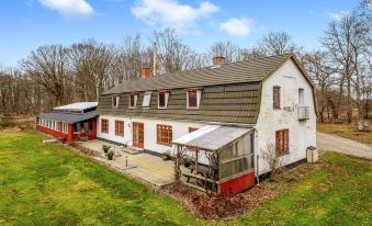 House, built in 1927. 15 km from the sea. Private: property 5'000 m2, well-kept garden. Barbecue, children's playground (swing). In the house: table football, trampoline, washing machine, tumble dryer. Grocery 6 km. Golf course 6 km. The owner does not accept any youth groups. "Eva" - 9km to the fjord", 4-room apartment 290 m2. Object suitable for 12 adults. Living room with TV. Kitchen (oven, dishwasher, 5 induction hot plates, microwave, freezer). 3 showers/WC. Upper floor: 1 room with 1 x 2 bunk beds, 1 double bed. 1 room with 1 double sofabed and 1 double bed. 1 room with 1 bed. 1 room with 1 bed and 1 double bed. Facilities: Internet (WiFi). Please note: non-smokers only. Maximum 2 pets/ dogs allowed. 849