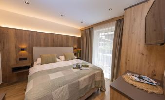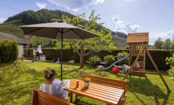 Modern, comfortable apartment block "Lenni´s", 3 storeys, renovated in 2022. 6 apartments in the residence. 800 m from the centre of Bruck, 6 km from the centre of Zell am See, 6 km from the centre of Kaprun, 5 km from the lake, 4 km from the skiing area. For shared use: large, well-kept garden (fenced). Garden furniture, barbecue, children's playground (swing). In the complex: lounge, WiFi, table football, trampoline, storage room for bicycles, storage room for skis, washing machine (extra), tumble dryer (extra), ski boot dryer. Bread roll service. Parking on the premises. Supermarket, bakery 500 m, bus stop 200 m, outdoor swimming pool 2.5 km, thermal baths "Tauern Spa" 9 km, bathing lake "Zeller See" 5 km. Golf course (36 hole) 4.5 km, cycle lane 200 m, skisport facilities 4 km. Well-known ski regions can easily be reached: Schmittenhöhe 4 km, Maiskogel-Kitzsteinhorn 6 km. Well-known lakes can easily be reached: Zeller See 5 km. Hiking paths: Schmittenhöhe 4 km. Please note: suitable for families. "Top 1", 2-room apartment 40 m2, on the ground floor. Bright, very modern and cosy furnishings: entrance hall. 1 double bedroom with cable TV (flat screen). Exit to the terrace. Kitchen-/living room (oven, dishwasher, 4 ceramic glass hob hotplates, toaster, kettle, electric coffee machine) with 1 double sofabed, dining table and cable TV (flat screen). Shower/WC. Underfloor heating. Natural stone floors. Terrace 6 m2. Terrace furniture. Very beautiful view of the mountains and the countryside. Facilities: Internet (WiFi, free). Please note: non-smokers only. 1 pet/ dog allowed. Smoke alarm. 50602-000351-2022