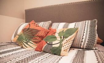 Our home sleeps 6 people—Bedroom 1 (Good Vibes) is equipped with a half bath, Queen size bed, closet, and charging side table. Bedroom 2 (Vintage Chic) is equipped with a Queen size bed, closet, smart tv, and side tables w/ charging lamps. Bedroom 3 (Hustle & Flow) is equipped with a Full size bed, smart tv, work desk and closet. Pack and play is available for small child by request.