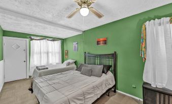Overall great space to accommodate multiple families with a well-equipped basement playroom for the toddlers in our group. Pros:- Kitchen well-equipped with utensils and appliances (but no blender)- Clean (do recommend cleaning service to vaccum under sofa cushions and check under beds between guests)- TVs and roku in living rooms - Comfortable sofas and beds- Backyard hangout space with large umbrella was super appreciated when we wanted to gather outdoors- A/C window units in each bedroom and living areas- Double washers and dryers (must request access in advance if desired) worked great- Close to the zoo and walkable to a couple of stores- Cannot hear any street noise in bedrooms (including knocking when someone was at the front door and car beeping) Cons:Older house with quirks of being an older house - Doors must be shut a particular way- Some locks and knobs do not work correctly- Lower floor kitchen has uneven drop to living room that's a tripping hazard- Hallway toilets older and required tweaking to flush correctly- Tub drains slowly- Street parking can be challenging (but single auto width driveway holds multiple vehicles)Cozy house with super accommodating hosts. We all enjoyed our stay! Thanks!