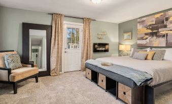 Come spoil yourself in our King bedroom suite that includes walk-in closet, 5 piece bath including Jacuzzi Jetted tub, and private back door to the deck and backyard.