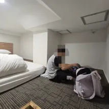 房間比較小,兩個箱子(一大一小)全部攤開就沒地方落腳了,衞生間不是乾濕分離,而且沒有浴室拖鞋,一次性拖鞋就第一晚入住時每人一雙,用到離店,酒店位置很好,出門走沒幾分鐘就是商業街,離海水浴場也很近。估計搞衞生也就處理垃圾,換毛巾,鋪被子,(👇🏻不知道是多久之前的房客留下的,🍬都已經軟化了,我們人比較高一眼看到了)