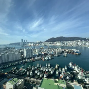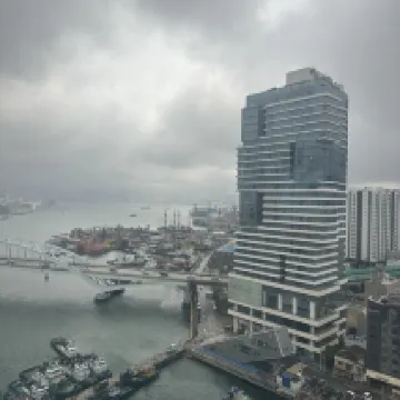 地點:南浦站6號出口步行過橋約5分鐘就到酒店,海景房能看到很美的景色,整體感覺舒服。 衛生:房內衛生可再改善,地毯有污跡,洗手間不是乾濕分離,如能加浴簾會較好。 服務:前台職員很有禮貌,提出換床單都能及時幫忙處理