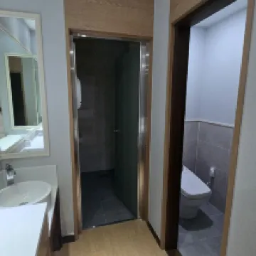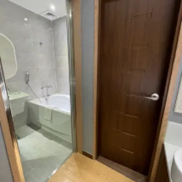 房間似乎沒有打掃乾淨,角落和浴缸裡還有頭髮。 房間很寬敞,但由於是三人間,更衣室最好能裝個簾子(從床上就能看到)。 如果能像日本飯店一樣提供拖鞋和除臭噴霧就好了,可惜沒有,所以我在大創買了一些。 工作人員非常友好,屋頂的夜景也很美。 離車站不遠,但路比較顛簸,不適合推著隨身行李上飛機。 不過,性價比很高。