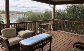 There are two enormous porches located upstairs. With ocean views, the front porch is the perfect place to enjoy a beverage, listen to the ocean, and soak up the Florida sunshine. The back porch is covered and is the best place to unwind and catch an amazing sunset.