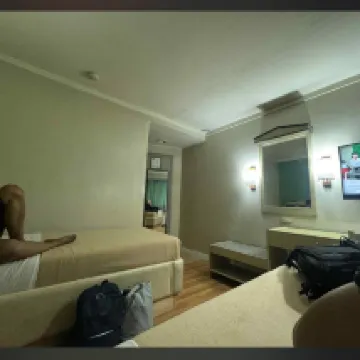 The hotel room is outdated — from the doors to every fixture. The beddings were not freshly prepared. The pillows, towel, and blanket had visible stains, and one pillow even had hair on it. Cleanliness was clearly neglected.