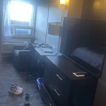 一切都很好,我們外出的時候有服務人員清理房間,把東西都看得非常好,這裏有沐浴露洗髮用品都不錯!房間看到的風景是卡加利Downtown,暖氣冷氣足夠,唯一不好的地方就是座邊的燈座電掣是接觸不良,我們只能要把床頭櫃拉開把不用的收音機拔下換成充手機電的插頭。