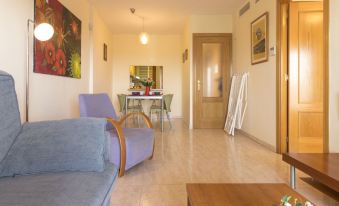 Cambrils: Apartment block "Monaco", surrounded by trees. 300 m from the sea, 300 m from the beach. For shared use: garden with lawn, swimming pool angular (15 x 6 m, seasonal availability: 01.Apr. - 30.Oct.). Outdoor shower. In the house: lift. Communal covered parking. Shop 300 m, grocery, supermarket 100 m, restaurant 300 m, bus stop "Torre de l'Esquirol" 350 m. Groups of teenagers on request only. 3-room apartment 65 m2, on the top floor. Comfortable and beautiful furnishings: living/dining room with 1 double sofabed and digital TV. Exit to the balcony. 1 room with 1 french bed and bath/WC. 1 room with 1 bed and 1 x 2 bunk beds. Kitchen (dishwasher, 4 ceramic glass hob hotplates, microwave, electric coffee machine) with hatch. Shower/WC. Air-conditioning, boiler (80 litres). No heating option. Balcony furniture, barbecue. Panoramic view of the sea and the countryside. Facilities: washing machine. Parking space n 1. Suitable for families. HUTT014371 ESFCNT00004303100021712400000000000000000000000000007